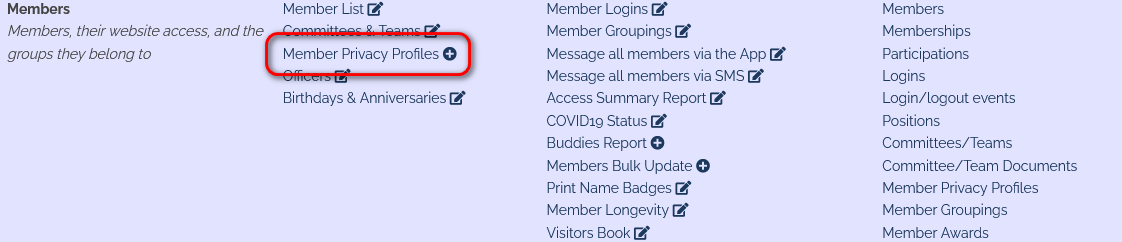 To get started, look on your Admin Dashboard, on the "Members" line, for the new link called "Member Privacy Profiles"...