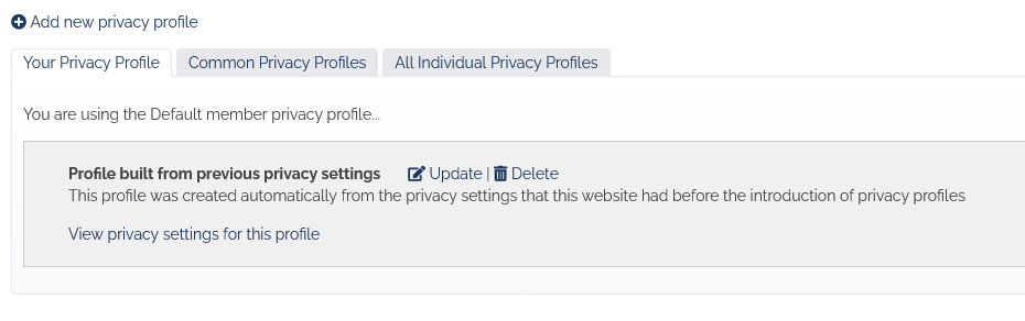 To start you off, we have made the new privacy settings in your HarmonySite as close as possible to what they used to be, based on your existing privacy settings (which no longer exist). We have created FOUR privacy profiles for you to choose from (or possibly allow your members to choose from)...