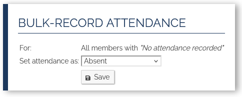 In certain circumstances, when recording attendance after an event, it may be easier to mark everyone as "Present" in one simple operation, and then manually mark the few people that are absent. Or vice-versa: Bulk-set everyone as "Absent", and then manually mark the few people that are present. You can now do such things at the bottom of your "Attendance" page...