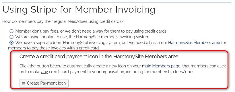 That new "payment" icon that we just described above, if created, should obviously be included in the HarmonySite App. We've just adjusted the App so that ALL such Members Area icons (icons that are simply links to third-party websites, such as the Stripe payment page) can now be shown in the App.
