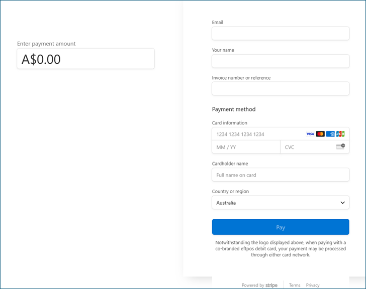 If a member clicks that new icon, they'll be taken to a page that looks like this, where they can send ANY amount of money to the group via a credit card, paid into the group's Stripe account...